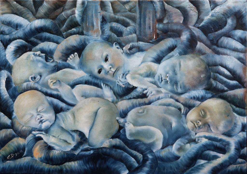 In meinen transrealistisch oder auch surrealen Bildern spiele ich gern mit Metaphern, reiße archetypische Bilder aus ihrem ursprünglichen Zusammenhang und setze sie in einen neuen verstörenden Kontext.